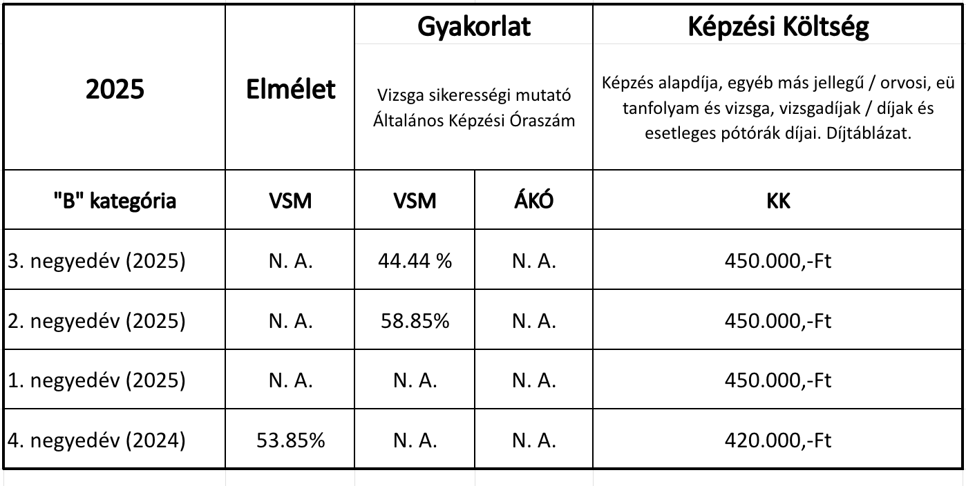 • Képzési Költség, amely ténylegesen mutatja mennyibe került a vezetői engedély